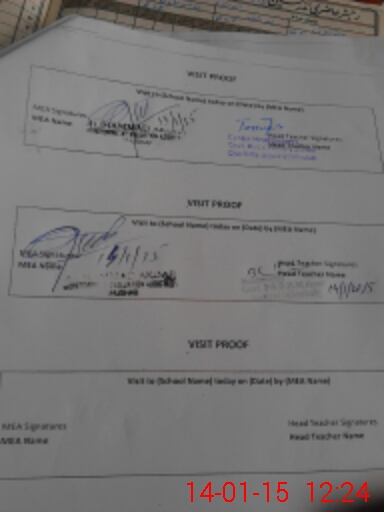 | Attendance Register | Head Teacher | MEA with School | Visit Proof |