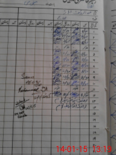 | CNIC | Full Name | Designation | R/C | Absence During Last Calender Month |