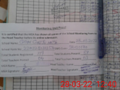 | Attendance Register | Head Teacher | MEA with School | Visit Proof |