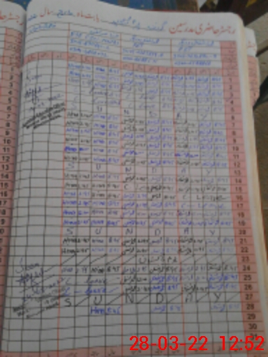 | CNIC | Full Name | Designation | R/C | Absence During Last Calender Month |