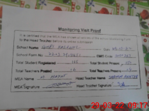 | Attendance Register | Head Teacher | MEA with School | Visit Proof |