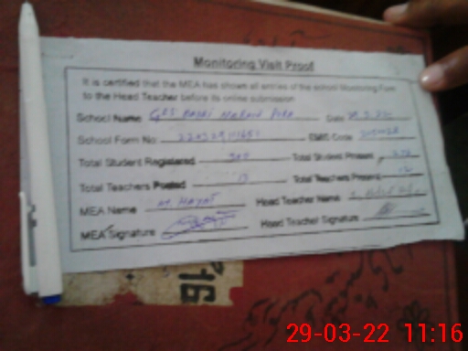 | Certified that this School was Inspected by the Undersigned MEA/DMO Today and the Information Stated Above is as Per Record. | |||||