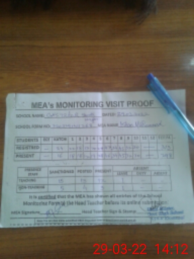 | Attendance Register | Head Teacher | MEA with School | Visit Proof |