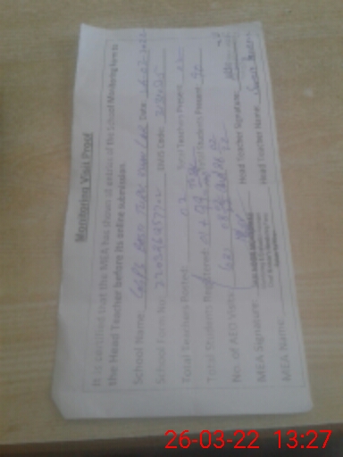 | Attendance Register | Head Teacher | MEA with School | Visit Proof |