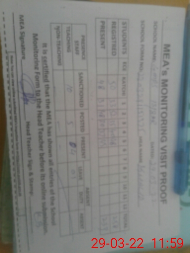 | Certified that this School was Inspected by the Undersigned MEA/DMO Today and the Information Stated Above is as Per Record. | |||||