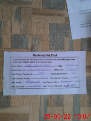 | Attendance Register | Head Teacher | MEA with School | Visit Proof |