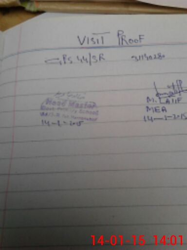 | Attendance Register | Head Teacher | MEA with School | Visit Proof |