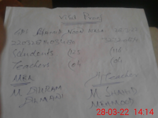 | EMIS Code: 32320674 | Name of School: GPS HAMID NOON WALA | |||