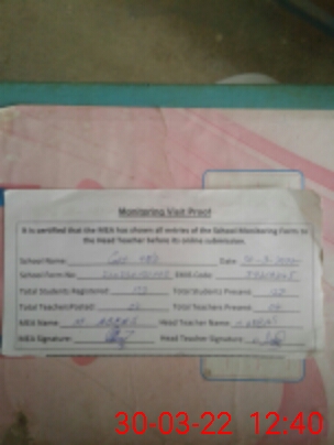 | Certified that this School was Inspected by the Undersigned MEA/DMO Today and the Information Stated Above is as Per Record. | |||||