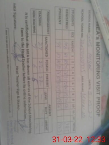 | Certified that this School was Inspected by the Undersigned MEA/DMO Today and the Information Stated Above is as Per Record. | |||||