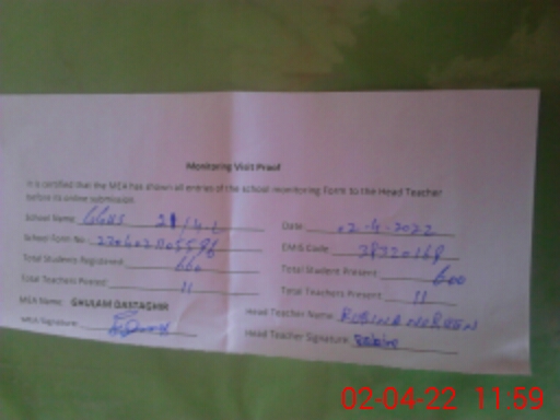 | EMIS Code: 39320169 | Name of School: GGHS CHAK NO. 21/4-L | |||
