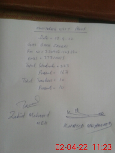 | EMIS Code: 37370015 | Name of School: GHS BAGH JAMERI | |||