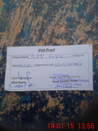 | Attendance Register | Head Teacher | MEA with School | Visit Proof |