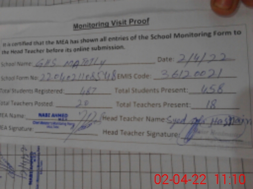 | EMIS Code: 36120021 | Name of School: GHSS MATOTLI SHUJABAD P.O MATOTLI | |||