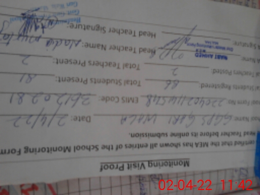 | Attendance Register | Head Teacher | MEA with School | Visit Proof |