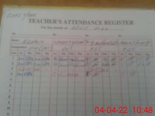 | Name: RI**** Designation: (School Headmaster's/Headmistress's) PST Phone/Cell Number: 03**** |