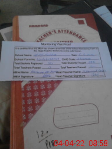 | Attendance Register | Head Teacher | MEA with School | Visit Proof |