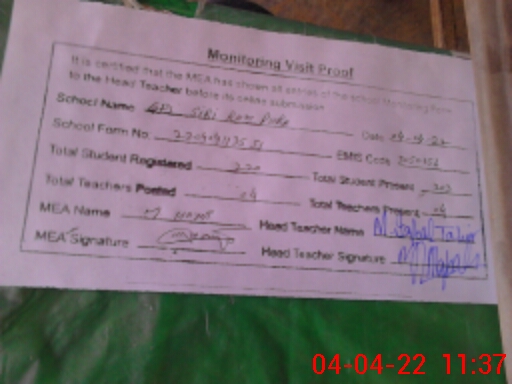 | Certified that this School was Inspected by the Undersigned MEA/DMO Today and the Information Stated Above is as Per Record. | |||||