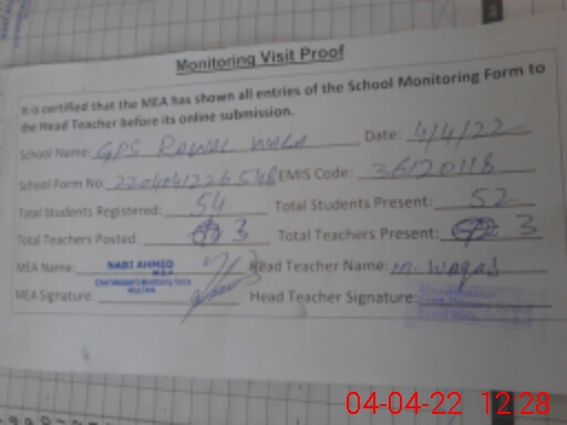 | EMIS Code: 36120118 | Name of School: GPS RAWAL WALA MOZA QAISAR PUR SHUJABAD | |||