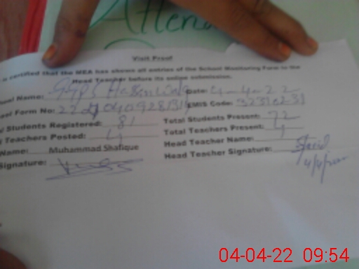 | EMIS Code: 32310231 | Name of School: GGPS HASSAN WALA | |||