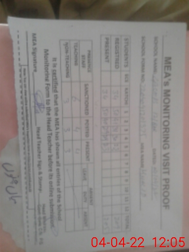 | Attendance Register | Head Teacher | MEA with School | Visit Proof |