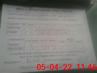 | Attendance Register | Head Teacher | MEA with School | Visit Proof |
