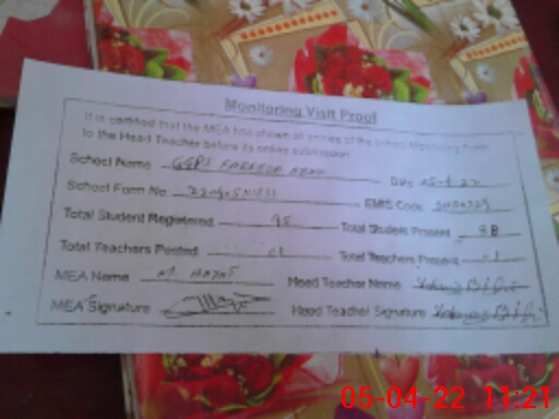 | EMIS Code: 31150329 | Name of School: GGPS FARID ABAD | |||
