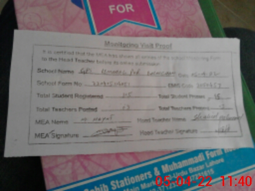 | Attendance Register | Head Teacher | MEA with School | Visit Proof |