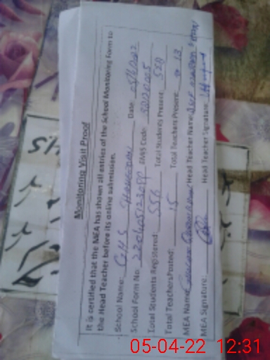 | Attendance Register | Head Teacher | MEA with School | Visit Proof |