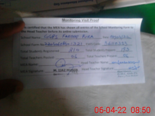 | EMIS Code: 36110353 | Name of School: GGPS MC FAROOQ PURA MULTAN | |||