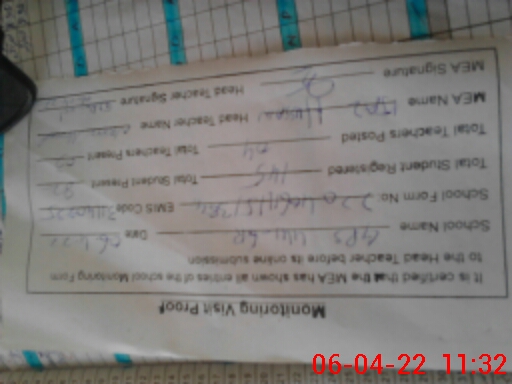 | Attendance Register | Head Teacher | MEA with School | Visit Proof |