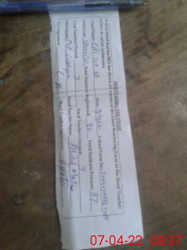 | Attendance Register | Head Teacher | MEA with School | Visit Proof |