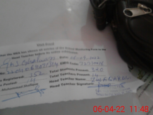 | EMIS Code: 32310016 | Name of School: GHS GHALWAN | |||