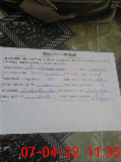 | Monitoring Date: 07-04-2022 | Start Time: 07-04-2022 11:01 AM | End Time: 07-04-2022 11:35 AM | Name of MEA: ZA**** UL**** KH**** | |