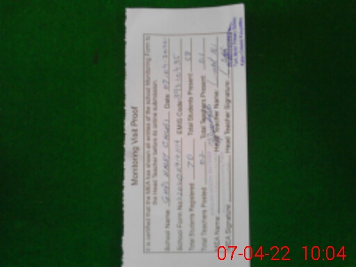 | Attendance Register | Head Teacher | MEA with School | Visit Proof |