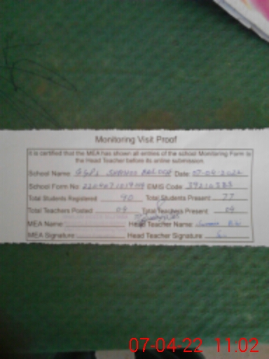 | Attendance Register | Head Teacher | MEA with School | Visit Proof |