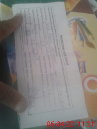 | Attendance Register | Head Teacher | MEA with School | Visit Proof |