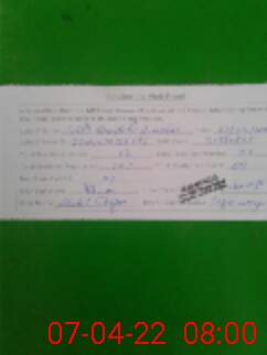 | Monitoring Date: 07-04-2022 | Start Time: 07-04-2022 07:49 AM | End Time: 07-04-2022 08:03 AM | Name of MEA: Ab**** Gh**** | |