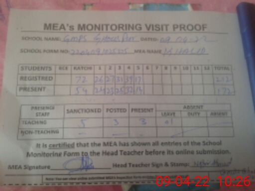 | EMIS Code: 36430393 | Name of School: GMPS GHOUS PUR, TULAMBA | |||