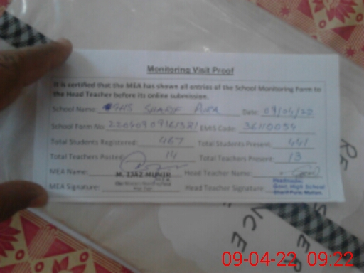 | Remarks (Use Separate Page if Required): Ghs shareef pura is temporarily in gps jamaul al00m and ggos sharif because permanently under construction since march 2022 | |||||