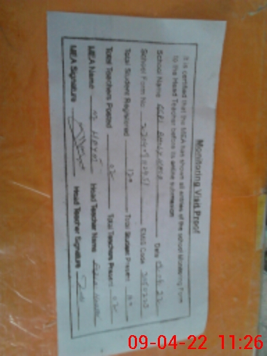 | Attendance Register | Head Teacher | MEA with School | Visit Proof |