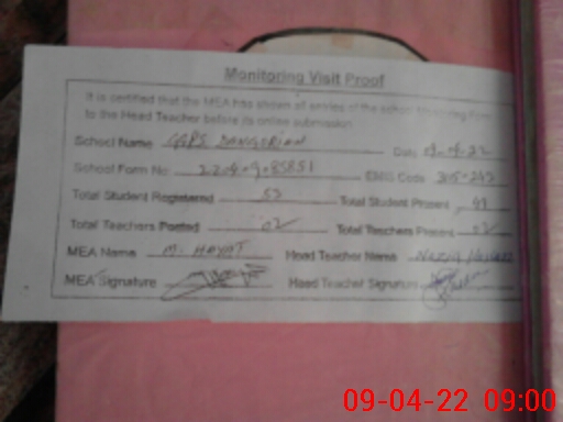 | Certified that this School was Inspected by the Undersigned MEA/DMO Today and the Information Stated Above is as Per Record. | |||||