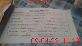 | Monitoring Date: 09-04-2022 | Start Time: 09-04-2022 10:59 AM | End Time: 09-04-2022 11:19 AM | Name of MEA: Za**** Iq**** BN**** | |