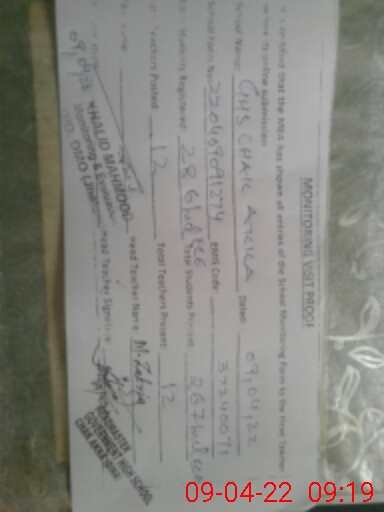 | Total no. of Classrooms: 11 No. of Classrooms Used for Teaching: 9 No. of Classrooms Storing Old Furniture, FTBs, etc: 0Comments if Any: NO VISIT BY HEALTH SUPERVISOR IN SCHOOL SINCE LAST 06 MONTHS |