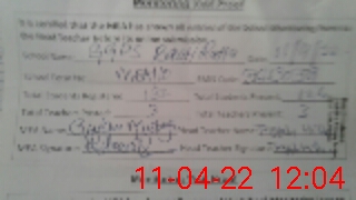 | Name: Ta**** Hi**** Designation: (School Headmaster's/Headmistress's) HEADMISTRESS Phone/Cell Number: 03**** |