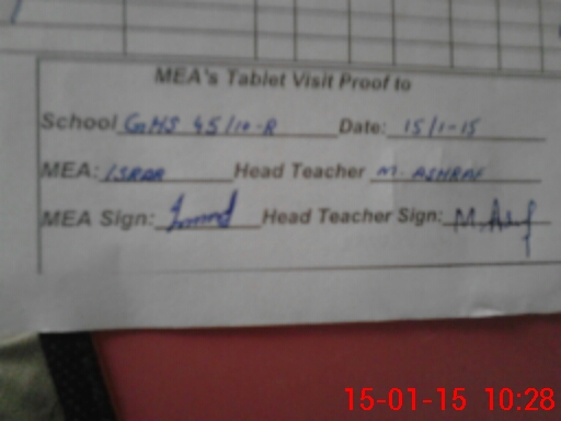 | Attendance Register | Head Teacher | MEA with School | Visit Proof |