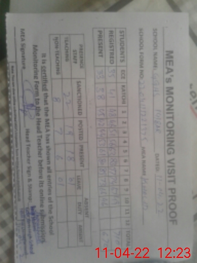 | Attendance Register | Head Teacher | MEA with School | Visit Proof |