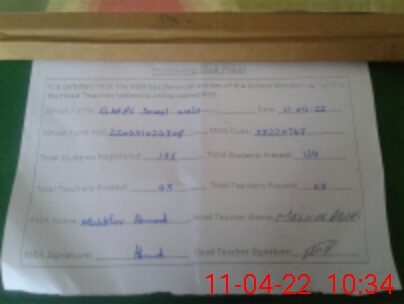 | Attendance Register | Head Teacher | MEA with School | Visit Proof |