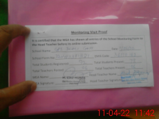 | Attendance Register | Head Teacher | MEA with School | Visit Proof |