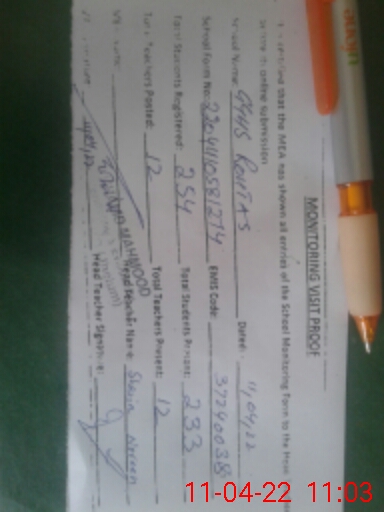 | EMIS Code: 37240038 | Name of School: GGHS ROHTAS | |||